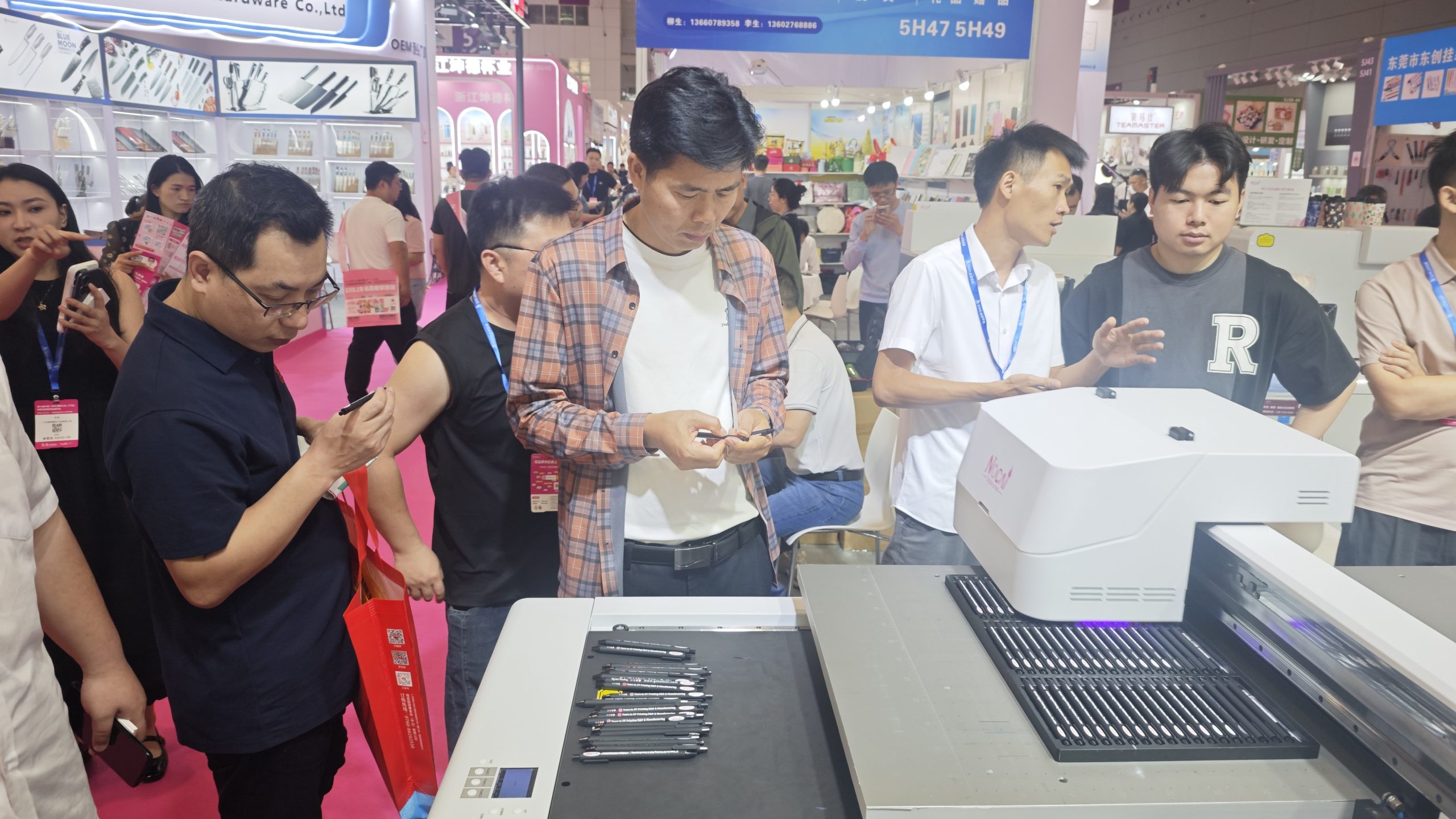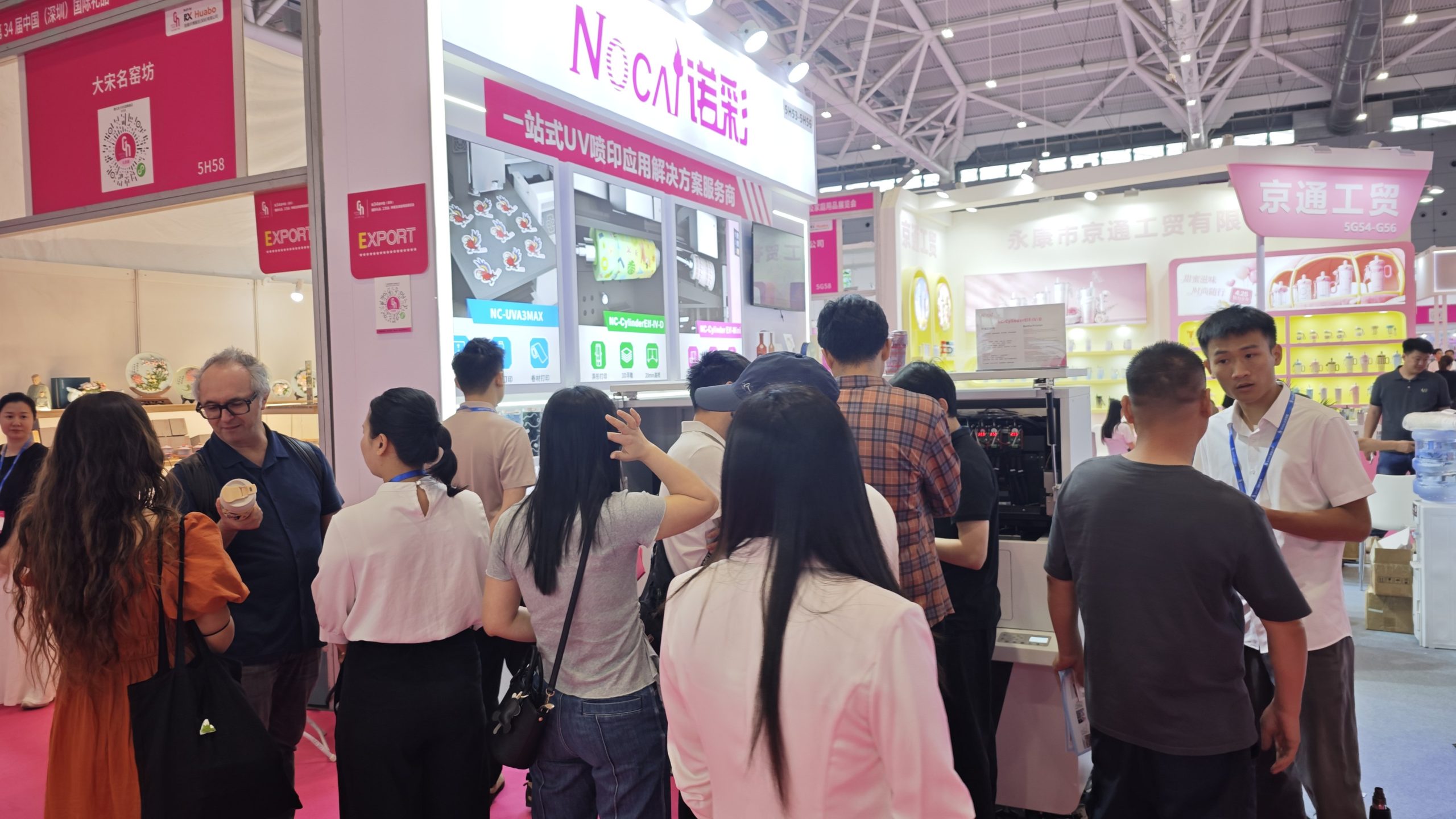 The grand exhibition is in full swing with non-stop popularity!The 34th China (Shenzhen) International Gifts Fair steps into its third day, still drawing massive crowds and abundant business opportunities. With comprehensive and customized gift printing solutions, NOCAI Booth 5H53-56 has remained a major highlight of the show. It attracts numerous purchasers and industry peers to stop by for in-depth communication and business negotiation.