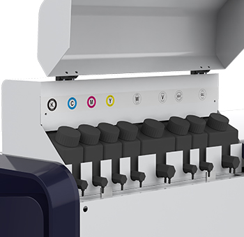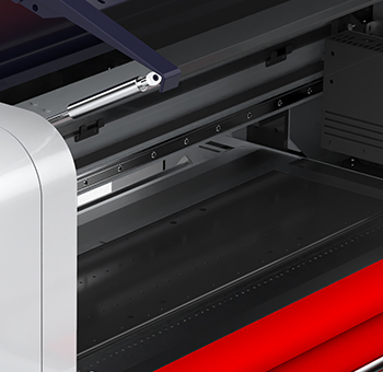 - 4 Epson I1600-E1 printhead. Unique variable ink droplet can control the ink size and thus decreasing the sense of particles of the graphic. More details, flat color transition and high staturation can be presented.