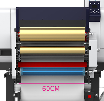 - 60cm width can satisfy most of the format and graphic needs. Tear film, print, golden stamp and take back material can be achieved at one time, which saves time and labor cost.